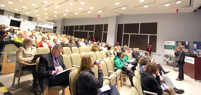 DC and Region of Durham host research forum Posted on November 14, 2012 at 2:50 pm. Durham College, in partnership with The Regional Municipality of Durham, Social Services Department, brought together participants from the academic and non-academic sectors on November 14 when it hosted The Impact of Social Services: A Lifespan Perspective. The forum, which focused on the measurement of outcomes associated with the delivery of social services in Durham Region, took place at the Lakeridge Health Education and Research Network Centre and saw attendees brainstorm together to set new research agendas, develop research questions and identify shared areas of focus related to social services. Comprised of several breakout sessions and a panel discussion, it featured a keynote presentation by Dr. Gabor Maté, a Canadian physician, public speaker and best-selling author, titled The Need For Our Services: A Bio-Psycho-Social Context. In addition, remarks were provided by Don Lovisa, president, Durham College; Dr. Hugh Drouin, commissioner, Social Services Department, The Regional Municipality of Durham; and Randy Uyenaka, professor, School of Health & Community Services, Durham College. Funding for the event was provided by the Social Sciences and Humanities Research Council (SSHRC), through a $25,060 Public Outreach Grant (POG) awarded to Uyenaka to conduct a research project in collaboration with the region. The grant marked the college’s first-ever SSHRC funding and was awarded through its Connection Program, which realizes the potential of social sciences and humanities research for intellectual, cultural, social and economic influence, benefit and impact. “Durham College is excited to host this event in conjunction with the region, which is providing a unique way for us to work together and with our community partners to better serve residents of Durham Region” said Debbie McKee Demczyk, director, Durham College Office of Research Services and Innovation. “We are extremely proud and grateful to have received this funding from the SSHRC, which has made today’s event possible.” In total, $6.3 million has been awarded to 95 POG projects, under the SSHRC Connection Program, with the grants designed to encourage researchers to find effective ways to disseminate, transfer, exchange and synthesize research results to wider audiences such as policy-makers; organizations in the public, private and not-for-profit sectors; students at all levels; and the general public. SHARE:
