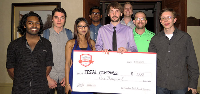 DC student team wins $1,000 prize through Summer Accelerator Program Posted on August 14, 2015 at 1:40 pm. Robert Biggar, a graduate of Durham College’s (DC) Advertising and Marketing Communications program, and his brother William have won a $1,000 cash prize for achieving the top score in DC’s Summer Accelerator program. They received the good news at the Innovation Celebration event, held on Thursday, August 13, hosted by Spark Centre and community partners, 360 Incentives and SAP Canada. The Biggars business venture is Ideal Compass, a company created to help travel agents increase their efficiency and improve the quality of their offerings for their clients. By attending sessions and achieving specific goals over the course of the 15-week Summer Accelerator program, they earned points, which, when cumulatively tallied earned them the cash prize. “I’m really happy my brother and I were able to set the goal of developing a viable business and then went on to achieve that,” said William Biggar. “The Summer Accelerator program truly helped us make Ideal Compass a reality; the sessions taught by business advisors, practice pitches and skill development all played a key role in our success. We’ve made some amazing connections over the course of the program and look forward to seeing what the future holds.” SHARE: