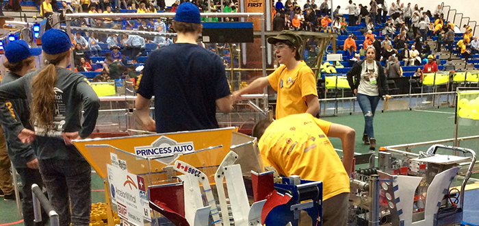 Robots battle it out at DC Posted on March 7, 2017 at 4:25 pm. High school robotics teams from across Ontario converged at Durham College’s (DC) Oshawa campus from March 3 to 5 for the 2017 FIRST® Robotics Competition: Ontario District – Durham College event. FIRST is an acronym that means For Inspiration and Recognition of Science and Technology. This is the third year DC has sponsored the FIRST event, welcoming more than 1,000 students on 40 teams. Competitors demonstrated their engineering skills and knowledge playing FIRST Steamworks, a new game developed for the annual robotics battle. By the end, one alliance, comprising three teams working together, walked away victorious. Congratulations goes to teams 1285 (The Big Bang), 4939 (Allspark9) and 4946 (The Alpha Dogs), who all hail from the Peel District School board. They will be competing at the Ontario District Championships at the beginning of April and then, if successful, will head to the World Championships in St. Louis at end of that month. The FIRST Robotics Competition: Ontario District – Durham College event was the first of nine qualifying competitions being held across Canada. FIRST is an international, not-for-profit organization dedicated to inspiring young people’s interest and participation in science and technology. In 2017, over 3,000 teams comprising more than 78,000 students from around the world will compete in FIRST Steamworks. SHARE: