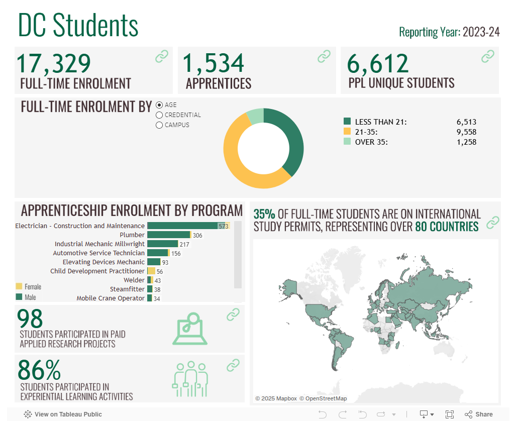 Open data at DC Open data at DC provides commonly requested data on DC’s students, programs and graduates. If you can’t find the information you require, please use this form to complete a request for data. DC students View data DC Programs View data DC grads View data